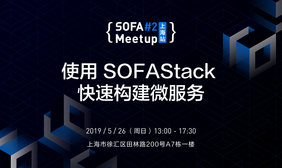 SOFA Meetup#2 上海站——使用 SOFAStack 快速构建微服务 2019-05-21 · 花肉 SOFA Meetup#2 上海站-使用 SOFAStack 快速构建微服务,5 月 26 日周日下午 13 点,上海市徐汇区田林路200号A7栋一楼。 #SOFAMeetup #SOFAStack
